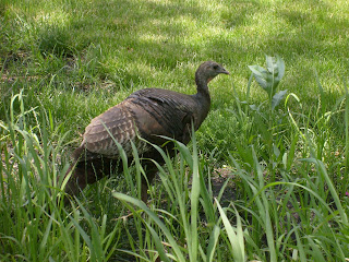 We were invited to help some friends with some psychic research at their home on Long Island and stay the weekend. On Sunday, when all the work was done, the friends took Chrissy and me on a hike at Caumsett State Historic Park so I could look for birds. It was a hot day with bright sun, but a nice breeze blew in off the ocean to cool us. I heard a few screeching calls from above and figured I'd soon see a red-tailed hawk. When we came out of the woods to an open sky, I looked up to find not one but three red-tails circling on the currents high above. It's so gratifying to identify something by sound! It makes me feel like I'm really learning and capable of learning even more.